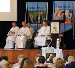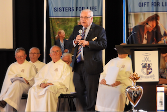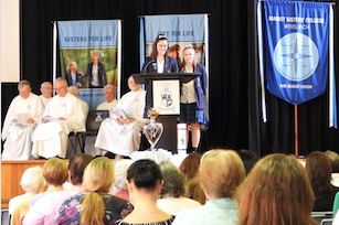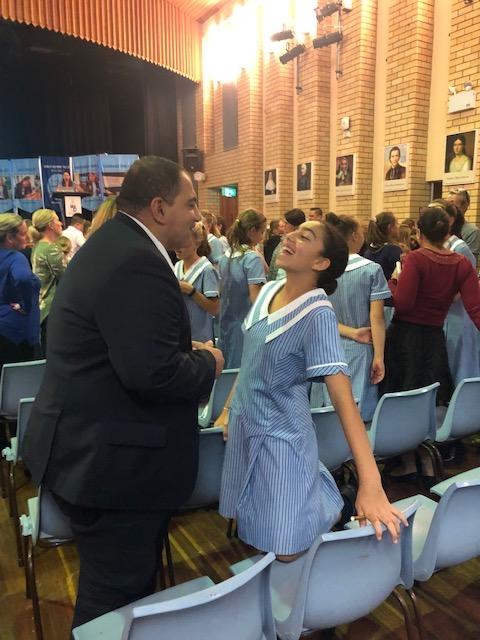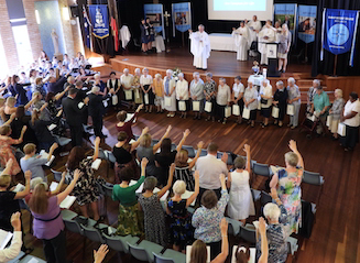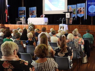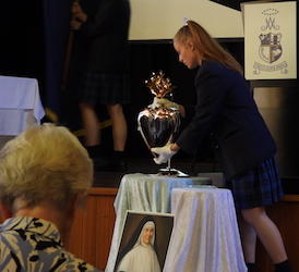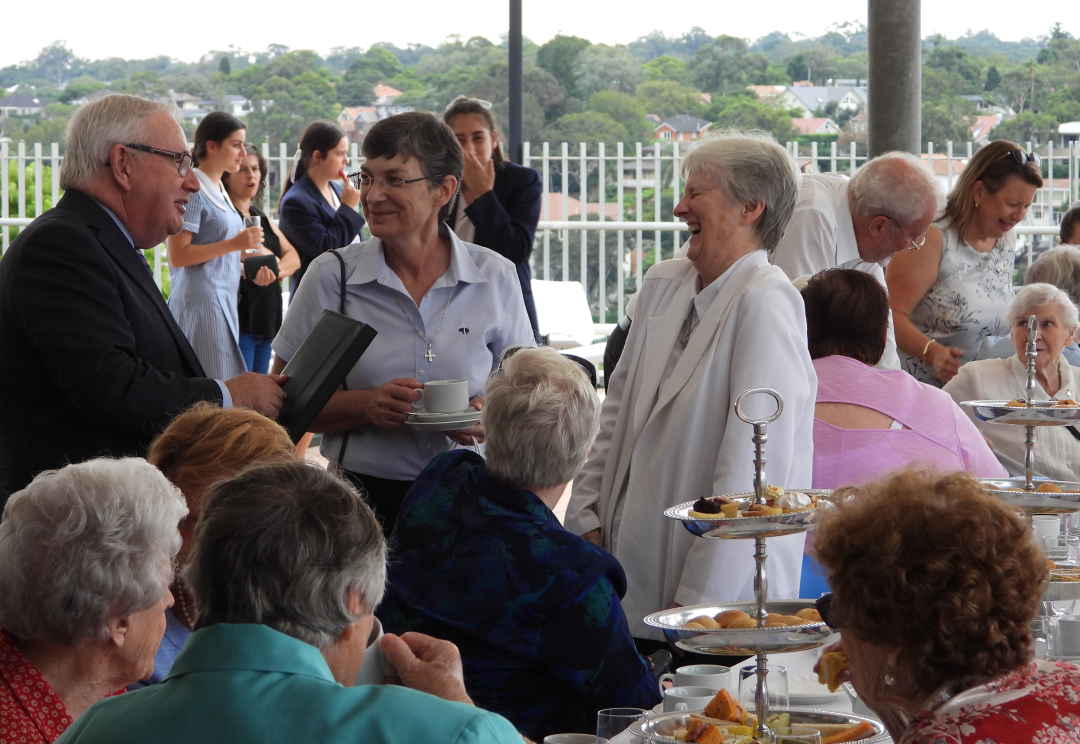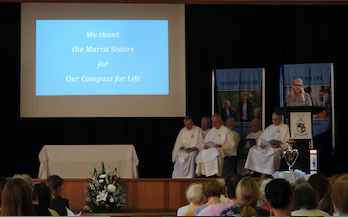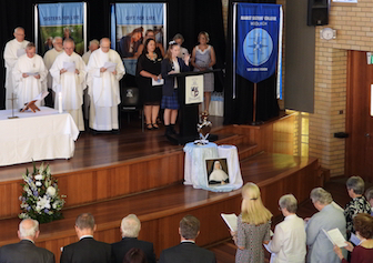 Our celebration for the Marist sisters began with a Thanksgiving Mass concelebrated by Fr Tony Corcoran, Provincial of the Marist Fathers, and five other Marist Fathers as well as our own Fr Kevin Bates. As a community, we blessed the sisters for their significant service to Catholic education. A commemorative plaque was unveiled and blessed to remember this historical event. This was followed by formal acknowledgement speeches by our College Co-captains, Polly Hancock and Danielle Dwyer as well as Dr Dan White, Executive Director of Sydney Catholic schools. Sr Cath Lacey, Unit Leader, spoke on behalf of the Marist sisters. A final acknowledgement included the cutting of a celebration cake which was shared at our special afternoon tea on Cerdon Plaza. It was during this time that special memories and stories were shared.
