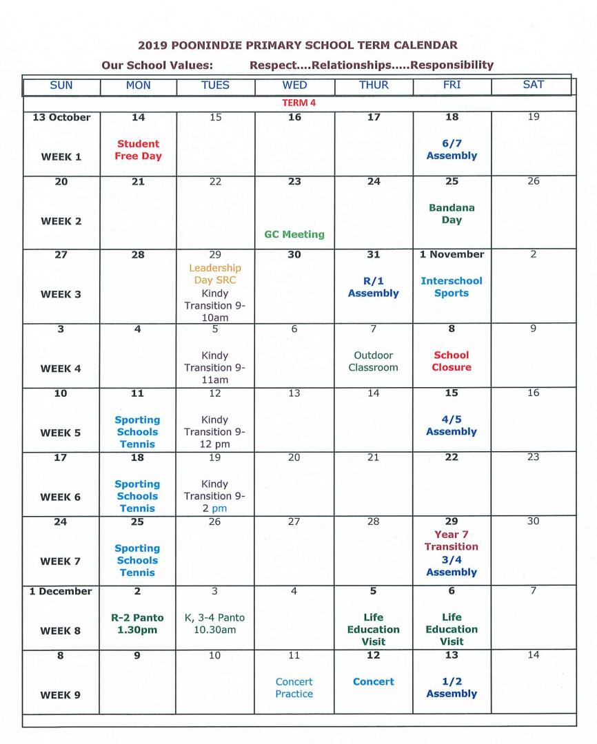 Assemblies will run on odd weeks this term, beginning with the 6/7 Class this Friday. The 2020 Principal Sally Cormack will be attending to introduce herself to parents. I hope to see as many of you there as possible. Parents are also welcome to attend our Governing Council meeting on Wednesday 23rd of October 5.30pm.