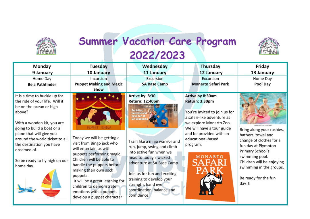 I would like to take this opportunity to thank Lynn, Tina, Megan and Lizzie for their commitment to education at Plympton Primary School and wish each of them all the very best in the future. Each of these wonderful staff members have added much value to our school community.