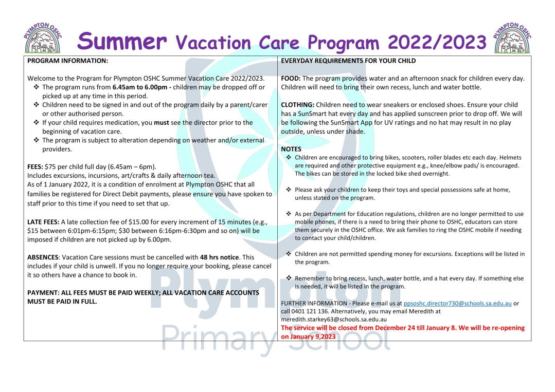 If you are moving schools and have not let us know, it is CRTICAL that you do this asap as we are in the final stages of class and teacher allocations. Please email me at Meredith.starkey62@schools.sa.edu.au