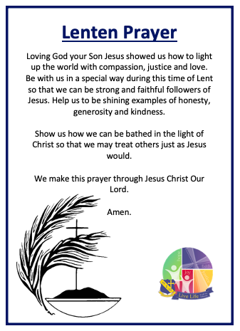 This week we begin our Lenten journey with the celebration of Ash Wednesday. Father Michael will be doing classroom visits for our Prep and Year 1 classes to talk about Ash Wednesday and Lent and will be leading the rest of the school community in an Ash Wednesday Prayer Celebration. This year, amid COVID 19 restrictions, Ash Wednesday will look a little bit different to normal (with do distribution of ashes), but we will still be taking time to celebrate this special day in our Church calendar. Families are invited to come along and celebrate Ash Wednesday with us this Wednesday at 11:30am in the Sport Centre. To help us with our COVID tracing, please ensure you use the QR code to sign in if you do come along to our celebration.