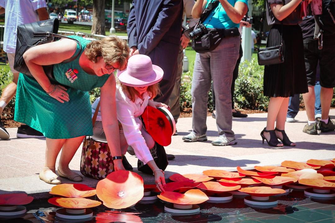 According to reports in the Sydney Morning Herald perhaps the most poignant part of the service was when members of the public were allowed to float 1701 cardboard poppies onto the new cascades watching them slowly drift to the lower levels.