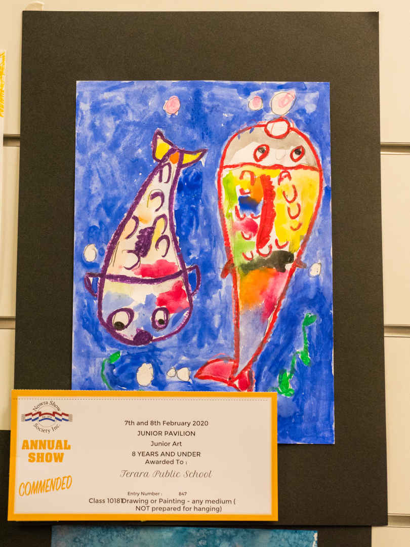 It was is such an honour to walk around the pavilion on Friday afternoon after school and not only see so many quality Terara entries, but to also see so many entries awarded prizes. Well done to all students and teachers who submitted to the show, and a massive thank you to the hard work of all the teachers who helped to pull our entries together and get them to the show. Some of the art will be featured in our school office, otherwise it will be sent back to classrooms for students to take home.