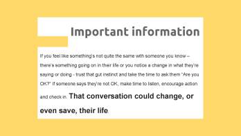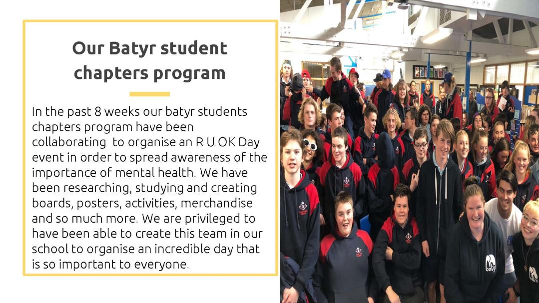 · Students will be given flyers (designed by a Year 12 student) which promotes the Black Dog Institute, including the link for online donations. Students will then be going out into the community after their year meeting to deliver these flyers to businesses, their families and friends.