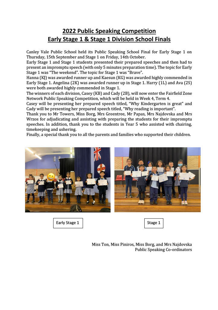 On Thursday 20 October at 1:50pm we will be holding a Parent Kiosk to assist parents in completing the application process online. Please come along to the flagpole area near the Canley Vale Rd entrance if you wish to apply for your child and would like some assistance with the online application form.