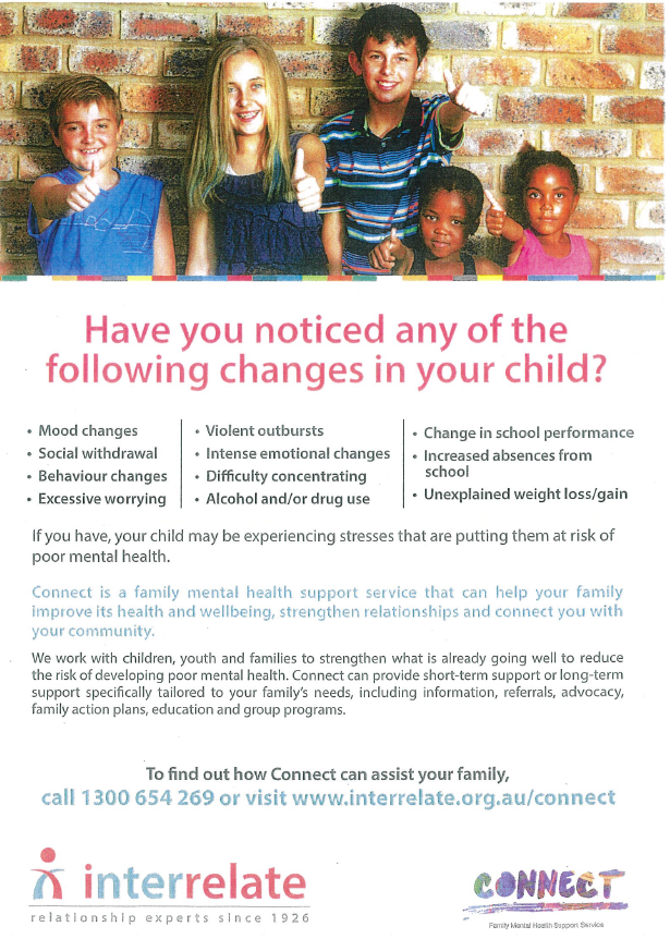 Included in this newsletter is an information sheet about a service called INTERRELATE. This service is free to all families and Interrelate can offer help and support for parents and carers. Please contact me if you would find this support valuable for you and your children and I will then contact the service.