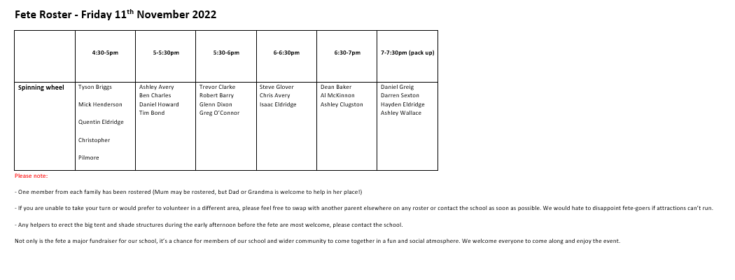 Tuesday 20th December – Last day of school – students to bring old clothing to assist with cleaning up and moving classes.