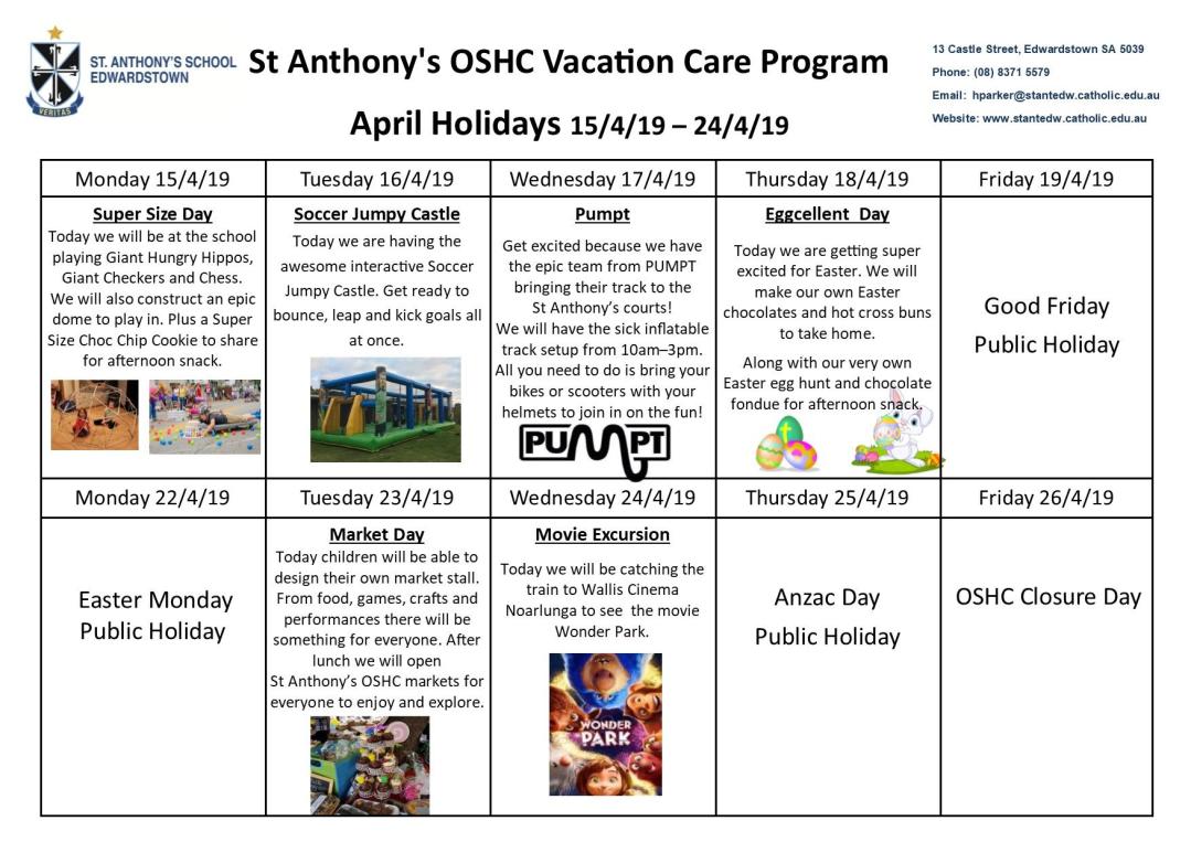 With only a few days of term 1 left, I personally wish to thank all members of the community for the welcome and privilege I have had in becoming a part of the amazing St Anthony’s community. I hope this term has contained many great moments for you and your children? I would really love to hear about your thoughts and ideas about this term. What did we do well? What could have been better? Do you have any ideas or comments to continue to help St Anthony’s grow and improve? I invite you to come and chat, drop me an email or drop your thoughts off at the Front Office.
